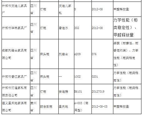 中国经济网记者了解到,北京世纪京洲家具有限公司是一家甲醛释放量不合格的产品IBOSS推柜、任丘振宇家具厂振宇品牌木柜、任丘银秀家具厂银秀木柜、黄骅中兴木器厂木柜、黄骅南方家具厂乾仓品牌木柜、大连新智办公家具有限公司新智活动推柜、葫芦岛连山区新丰办公用品加工厂新丰品牌木柜、河南红家具有限公司红木柜、长沙县跳马乡东南家具厂东南品牌木柜、中山东胜镇都泰家具厂华都品牌木柜、重庆贝德罗家具有限公司贝德罗品牌床头柜、什邡艾迪尔家具厂艾迪尔家具品牌灯柜、什邡华林家具厂香迪尔灯柜、遵义星天地家具有限公司星天地品牌班台副柜。此外,佛山市顺德区乐从镇兴华家具实业有限公司在抽查中拒绝检查。