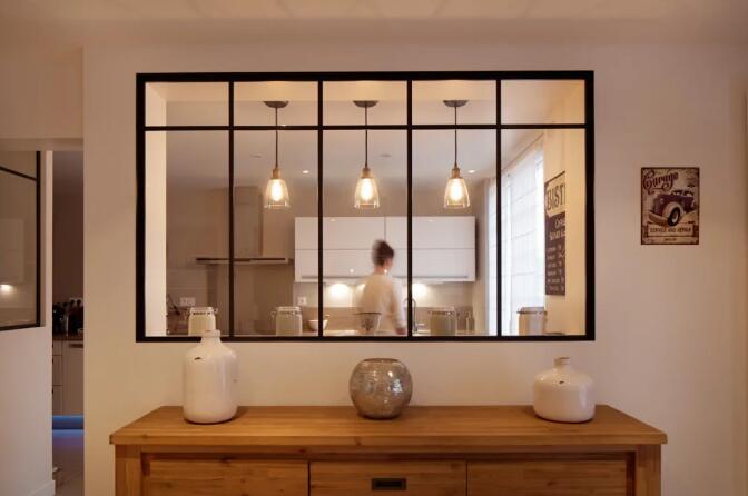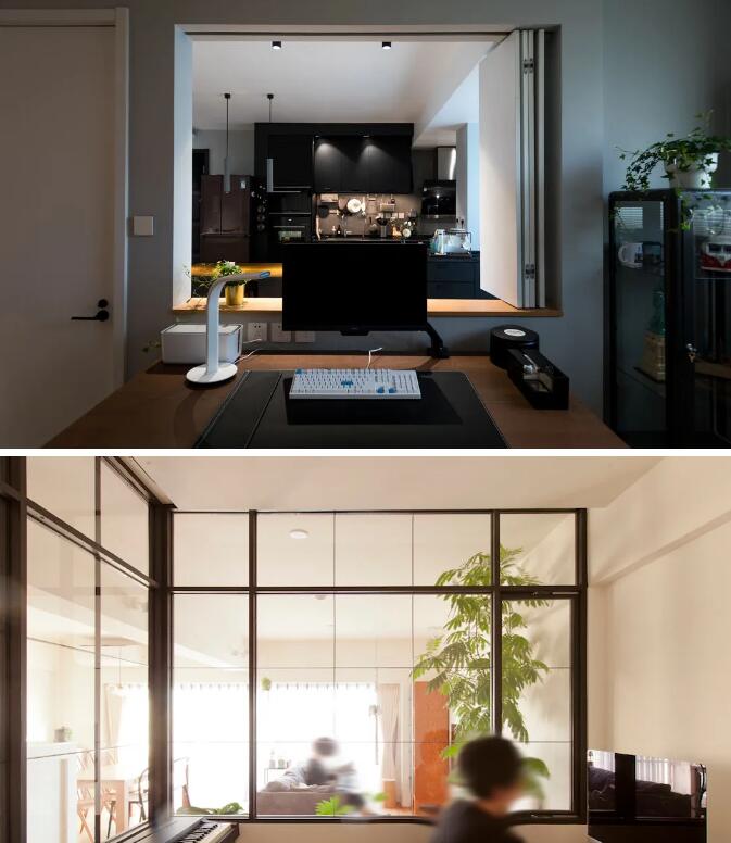 一扇室内窗,连接两个空间,使家庭之间的距离更近,互动更多。特别是如果家里有婴儿,父母在厨房做饭,或在其他空间清洁,可以通过室内窗户观察婴儿的情况,可以说非常亲密nice了!
