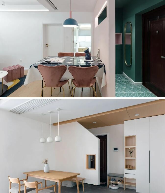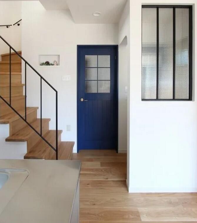 很多人喜欢在玄关做隔墙,挡住外人窥探室内的视线。但是,如果玄关又窄又不透明,回家关门,黑暗的空间真的很难受!灵活,在隔墙上做一扇窗,让光线照射到玄关。