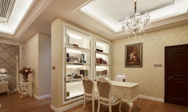 我们的欧式别墅装饰,墙纸也是金色的,优雅的白色家具搭配,也让人感觉特别迷人。