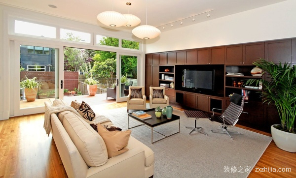 5.还有一面功能强大的电视墙,与书柜相结合。这也是一个完美的体验。强大的存储功能已成为电视柜与书柜相结合的墙面装饰的亮点。透过大玻璃门和各种书籍的存储和装饰也可以成为一个装饰点。此外,这种与书柜相结合的经典墙面装饰非常受欢迎。