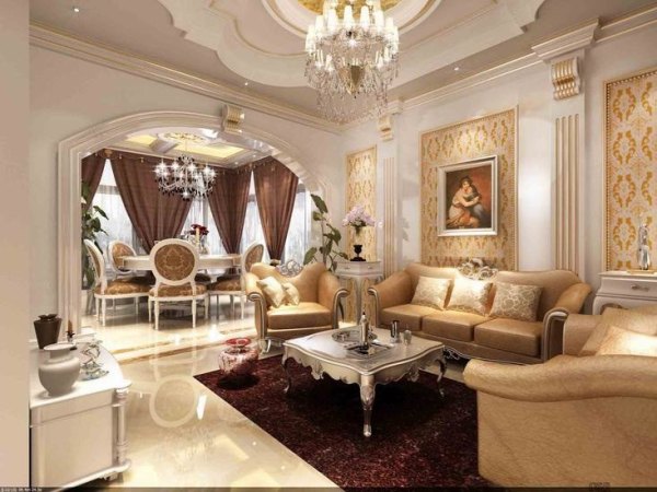 3、亚特兰蒂斯时代复式别墅装饰设计,设计味道很重,当复式高,欧洲走廊柱,给人庄严的感觉,复古地砖和优雅舒适的家具展示聚集在一起,庄严,大大拓宽了空间的纵横感,让水晶灯非常华丽。
