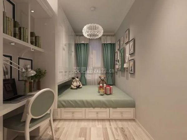 阳泉装修公司从不同区域的设计方面5、这款在设计上,稍微有些不同,这里直接把学习区,设在了榻榻米一端,书桌、书架一体相连,都是以置物架的形式为主,简洁实用,而且省了椅子了,可以直接坐在榻榻米上办...